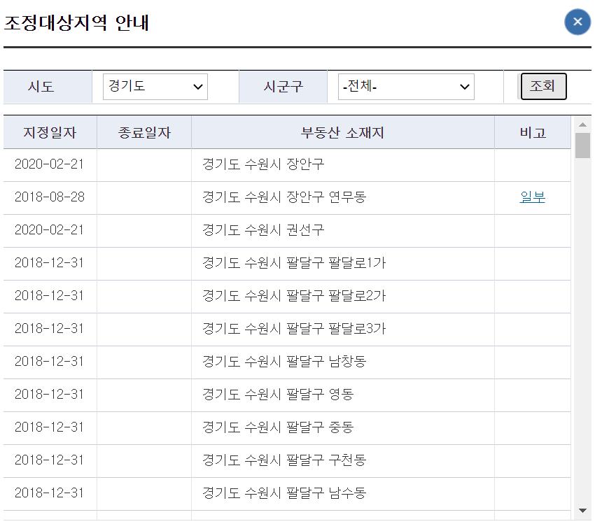 양도 물건지의 주소가 조정지역 유무와 조정지역 중과대상 주택 유무를 확인하시길 바랍니다. 조정대상지역을 클릭하시면 조정지역 지정일자와 부동산 소재지를 확인하실 수 있습니다.
