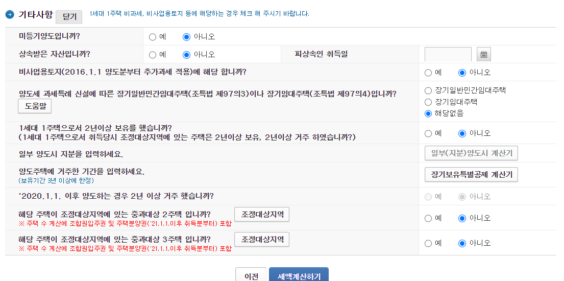 양도소득세는 양도가액과, 취득가액을 알고 있는 경우는 1개 부동산 양도 시와, 부동산, 분양권 시설물 이용권, 주식을 양도하는 경우를 계산할 수 있습니다. 취득가액을 모르는 경우는 부동산 양도 시만 모의계산이 가능합니다.