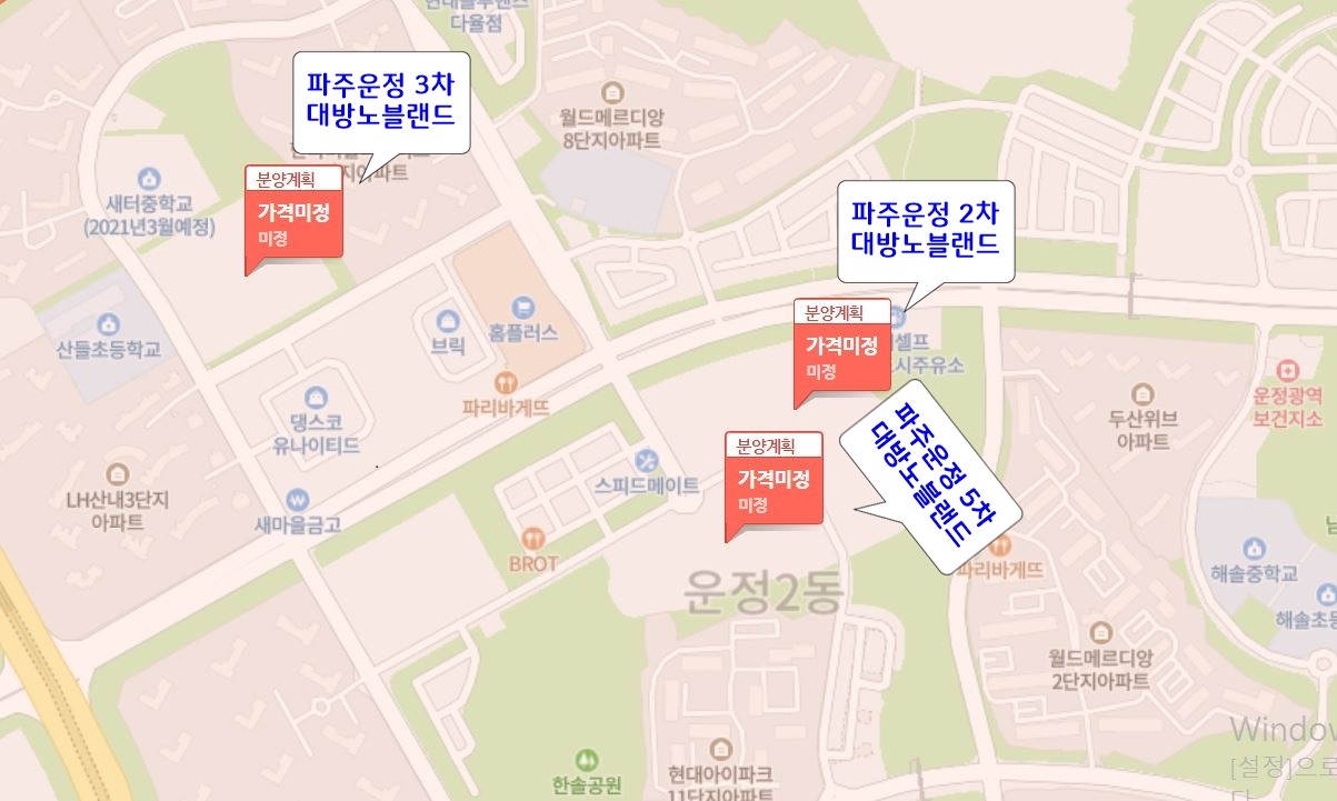 안녕하세요. 오늘은 비규제 지역인 파주 운정신도시 대방 노브랜드 분양 예정 단지에 대해 알아보겠습니다.