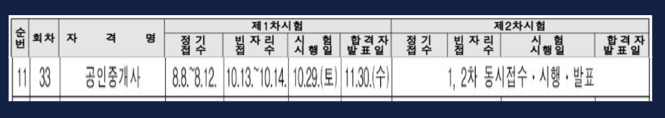 2022년 공인중개사 시험일정