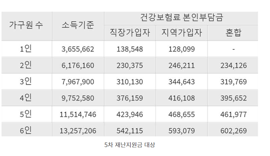 5차 재난지원급 지급 대상은 상위 10% 가량의 고소득자는 제외합니다. 상위 10% 고소득자는 1인 가구 기준으로 연소득 5천만 원 이상입니다.
