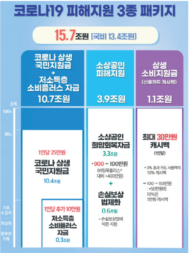 *국민지원금 - 코로나 상생국민지원금 1인당 25만원, 저소득층 소비플러스 자금 1인당 10만원